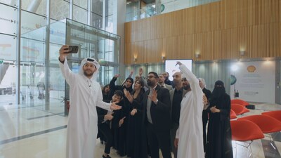 يلتقط الخريج محمد القصابي لحظة مليئة بالحماس مع المتسابقين الجدد خلال مرحلة اختيار المشاركين في الموسم السابع عشر من "نجوم العلوم".