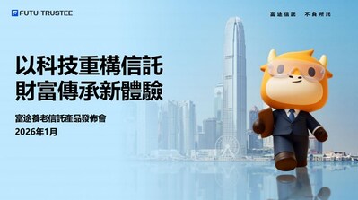 香港2026年1月21日 /美通社/ -- 富途控股(Nasdaq: FUTU)旗下富途信託(Futu Trustee Limited)於 2026 年 1 月 9 日,在「2025 香港財富管理高峰論壇暨第十二屆港股 100 強頒獎典禮」活動分會場,正式推出「富途養老信託」—— 一款專為香港中產家庭量身打造的養老與財富傳承產品。憑藉金融科技驅動,該產品將傳統家族信託的門檻由數千萬港元大幅降至 300 萬港元起,收費更親民透明,標誌著香港普惠信託服務正式邁入新階段。