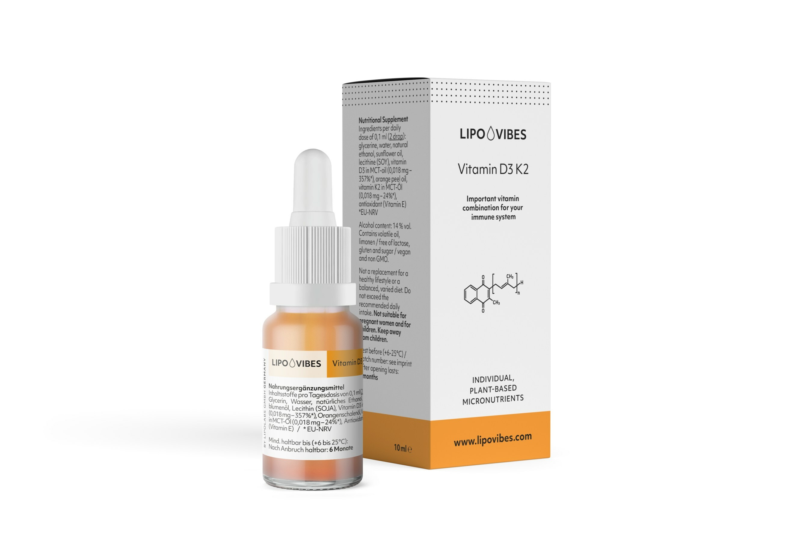 Hoch bioverfügbare Emulsion: LipoVibes verkapselt Aktivstoffe wie Vitamin D mit pflanzlichen, körperverwandten Lipidstrukturen. Somit gelingt es, die Aufnahmebarriere der Zellen zu überwinden und eine effektive Absorption zu ermöglichen. Dies führt nicht nur zu einer effizienteren Nutzung der Nährstoffe, sondern reduziert auch das Risiko von Nebenwirkungen, da die Produkte durch die verbesserte Bioverfügbarkeit nicht überdosiert werden müssen.