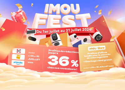 PARIS, 12 juillet 2024 /PRNewswire/ -- IMOU, acteur majeur de la maison connectée , annonce son événement commercial IMOU Fest dont le déroulement est prévu pendant tout le mois de juillet . Pendant cette période, les clients pourront bénéficier de reductions importantes sur les modèles les plus récents de la gamme de caméras de sécurité IMOU qui comprend des modèles intérieur et extérieur très compétitifs