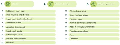 Les produits les plus recherchés par les acheteurs sur Europages au cours du premier trimestre 2023 ont été les cosmétiques, les produits alimentaires et les produits de la catégorie alimentation et agriculture, suivis par les vêtements et les fruits et légumes.