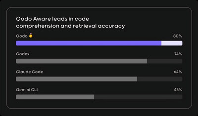 Qodo Aware Deep Research achieves 80% accuracy on new coding benchmark, surpassing OpenAI's Codex at 74%, Anthropic's Claude Code at 64%, and Google's Gemini CLI at 45%