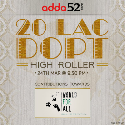 On March 24th, Adda52.com - India's largest poker site, is hosting '20 Lac DOPT High Roller', which is a charity poker tournament to benefit World For All, a Mumbai-based animal welfare organization that helps animals in leading better lives.