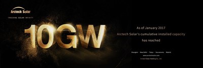 KUNSHAN, China, Feb. 8, 2017 /PRNewswire/ -- As of January 2017, the cumulative installed capacity of Arctech Solar Holding Co., Ltd. (hereinafter referred to as "Arctech Solar") has reached 10GW globally. Meanwhile, Arctech Solar's sales performance in some country markets is also eye-catching in 2016, with 800MW and more than 2GW's shipment in India and China markets respectively, Arctech Solar has been playing a leading role in the above two major PV markets.