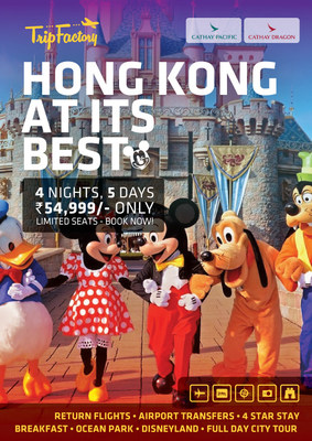 TripFactory.com, India's largest online holiday store, announced a joint promotion with Cathay Pacific and Cathay Dragon to introduce an exclusive discount offer for customers on holidays to Hong Kong.