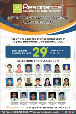 ભારતમાં મેથેમેટિકલ ઑલમ્પિયાડ પ્રોગ્રામ, જેનું આયોજન હોમી ભાભા સેંટર ફોર સાયંસ ઍજ્યુકેશન (એચબીસીએસઈ) દ્વારા ભારત સરકારના પરમાણુ ઉર્જા વિભાગ (ડીએઈ)ના રાષ્ટ્રીય ઉચ્ચતર ગણિત બૉર્ડ (એનબીએચએમ) વતી કરવામા આવે છે, જેમાં સફળ રહેનાર વિદ્યાર્થી ઇંટરનેશનલ મેથમેટિકલ ઑલમ્પિયાડ (આઇએમઓ) માં ભાગ લે છે. વિવિધ ક્ષેત્રોમાંથી મળતી માહિતી મુજબ, ઓગણસાઈઠમાં ઇંટરનેશનલ મેથમેટિકલ ઑલમ્પિયાડમાં રેઝોનેન્સના કોટા સ્ટડી સેન્ટરમાંથી 9 વિદ્યાર્થીઓ, સુરતથી 3 વિદ્યાર્થીઓ, ભુવનેશ્વર અને પટના દરેકમાંથી 2 વિદ્યાર્થીઓ અને અમદાવાદ, જોધપુર, રાયપુર અને રાંચી સ્ટડી સેન્ટર દરેકમાંથી 1 વિદ્યાર્થી RMO માં પસંદગી પામેલ વિદ્યાર્થીઓનો ભાગ છે. 18 વિદ્યાર્થીઓ વર્ગ -9 ના, 7 વિદ્યાર્થીઓ વર્ગ -10ના, 3 વિદ્યાર્થીઓ વર્ગ -9 અને 1 વિદ્યાર્થી વર્ગ-8નો છે. કોટાથી પસંદગી પામેલ 9 વિદ્યાર્થીઓમાંથી, 2 વિદ્યાર્થીઓ જવાહર નવોદય વિદ્યાલય, બુંદીના છે.