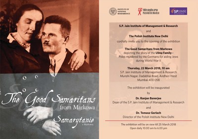 S.P. Jain Institute of Management & Research (SPJIMR) द्वारा The Polish Institute के सहयोग से 'The Good Samaritans from Markowa' नामक प्रदर्शनी का आयोजन किया जाएगा। इस प्रदर्शनी का उद्घाटन गुरूवार 22 मार्च, 2018 को 11 बजे सुबह