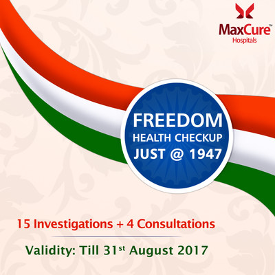 As India celebrates the 70th year of independence, MaxCure Hospitals announced an initiative to help make India free from diseases. They have designed a new health check-up package, that helps monitor all critical health concerns, only at INR 1947, as a mark of the year of independence. This freedom health check-up gives reports of about 68 parameters and includes 4 consultations. The tests included in the package alone, would cost about INR 8000 otherwise.