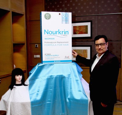 (Photo: https://mma.prnewswire.com/media/655628/Rajesh_Kapur_Glenmark_Launches_Nourkrin_Woman.jpg )