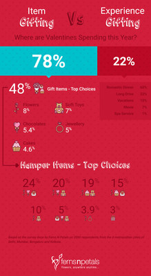 Valentine's Day is the perfect time to speak one's heart out and express their unspoken love. There are different ways but nothing works more than a bouquet of roses and gifts. Ferns N Petals, a leading online gifting company conducted a survey with 2000 people across four metropolitan cities of Delhi, Mumbai, Bengaluru and Kolkata. The survey was done with the intention of understanding the mindset of the people while going for shopping on Valentine's Day. It was also undertaken to know which the favourite pick - Buying gift items or sharing experience on Valentine day. Check out what the survey revealed based on the opinions of the respondents.