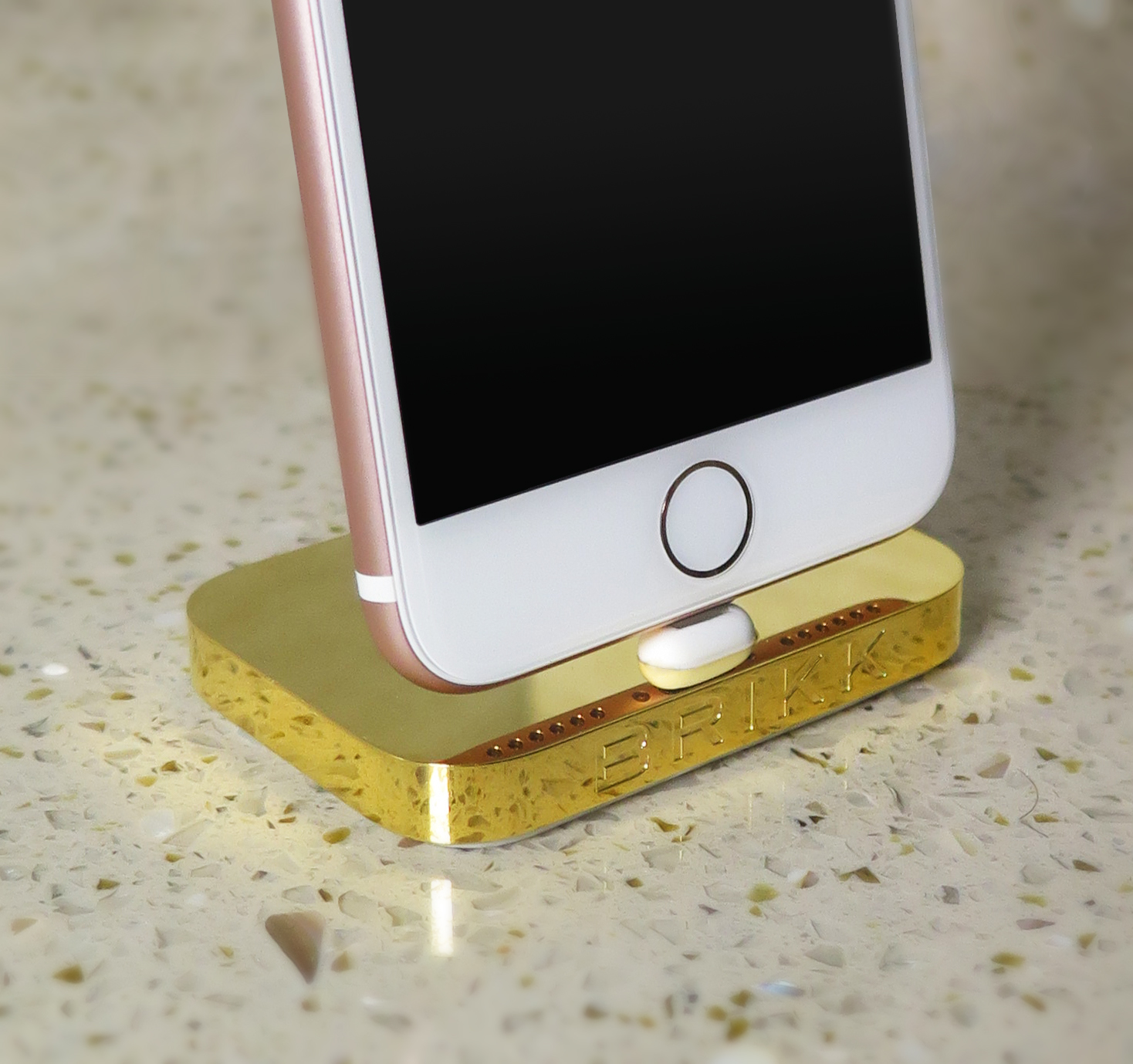 Lux iPhone Dock in genuine 24k yellow gold, 18k rose gold or 950 Platinum finish. Original Apple Dock opulized by Brikk.