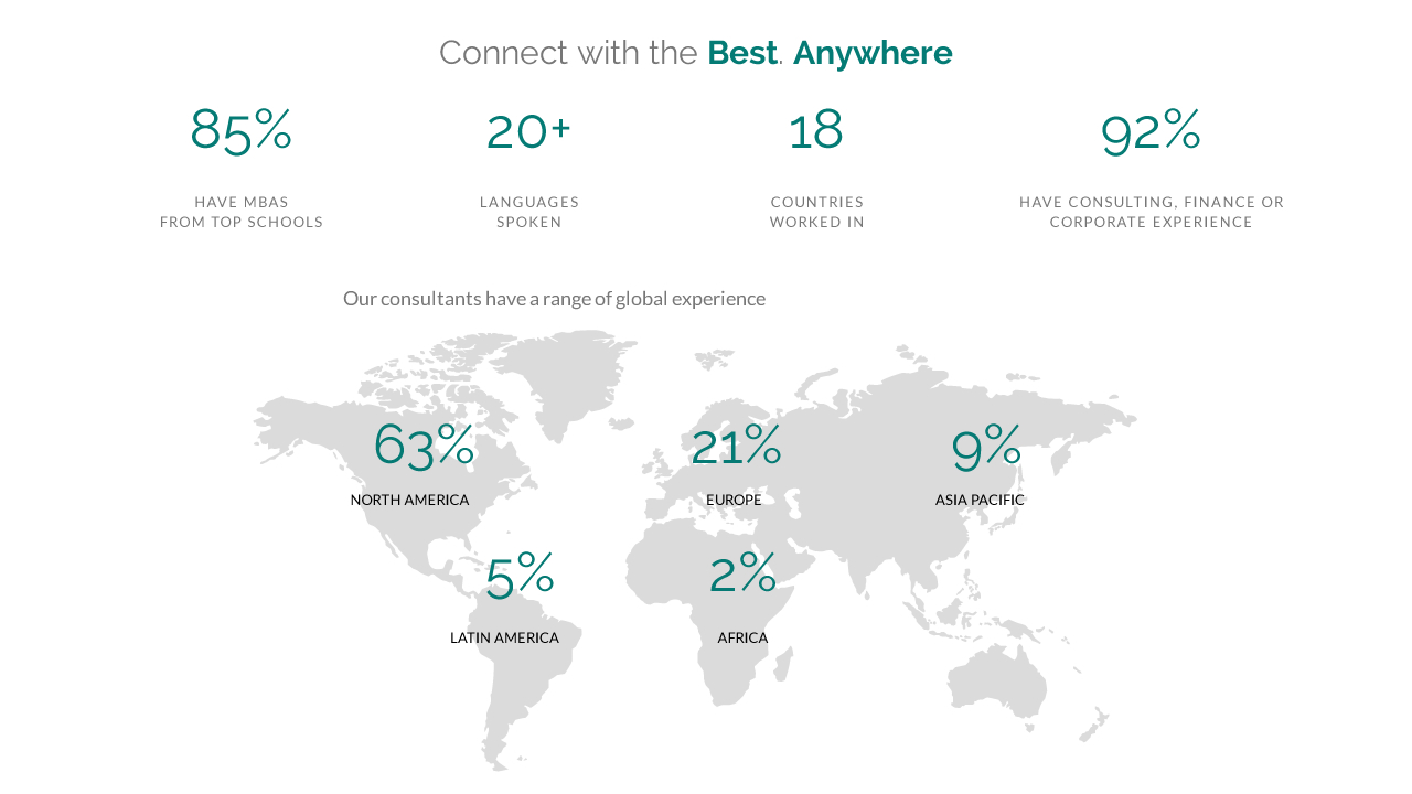 Although SkillQuo opens access to all businesses, the Company retains that element of exclusivity and prestige within its selection of consultants. SkillQuo takes pride in its stringent vetting process - accepting management consultants and business experts with the highest caliber of experience and education. It's common to come across a business expert who has worked for McKinsey or a Deloitte with an MBA from Wharton or Harvard.