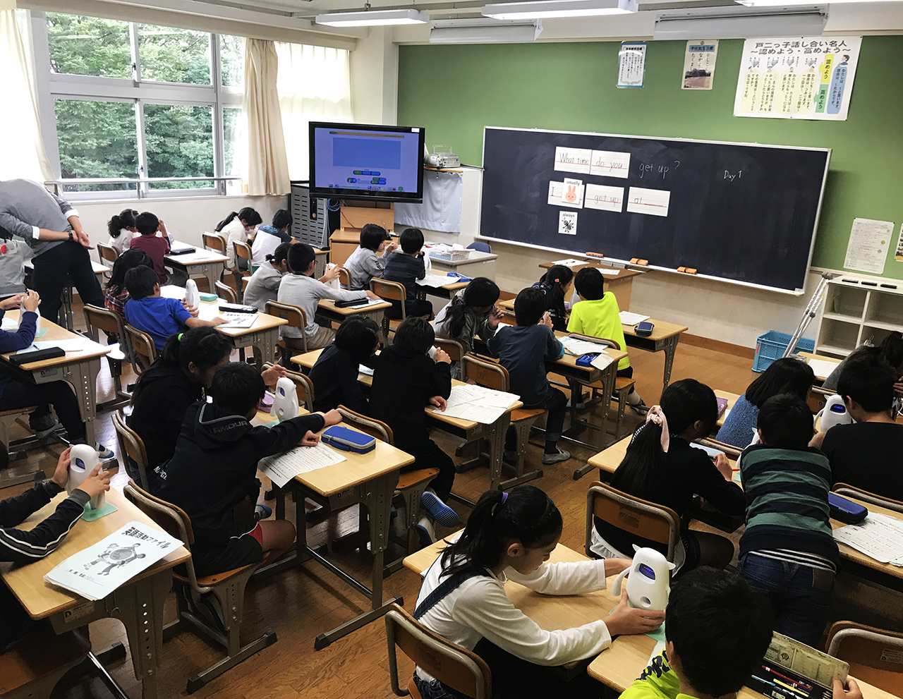 Assisting teachers in class, one Musio is assigned to each student to help practice English pronunciation and conversation exercises. Students are encouraged to engage with Musio even after class, as the Musio Robot Labs - similar to computer labs in schools- are open to all during lunch breaks and after-school activity hours.