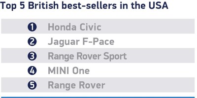 - American demand for British-built cars rises 7.0% in 2017, with exports reaching almost 210,000.