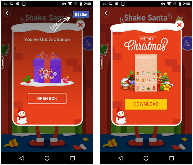 When tapping a Christmas logo, Santa Claus will appear on your screen and tell you how to shake your phone for Christmas gifts. The rumor is, the harder you shake, the more likely you are to get a prize.