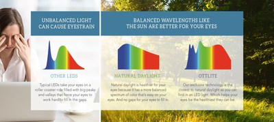 Two years in development, the OttLite Wellness Series™ features an exclusive proprietary LED formulation that delivers the closest thing to natural daylight available to help reduce eye strain and eye fatigue by 51 percent.