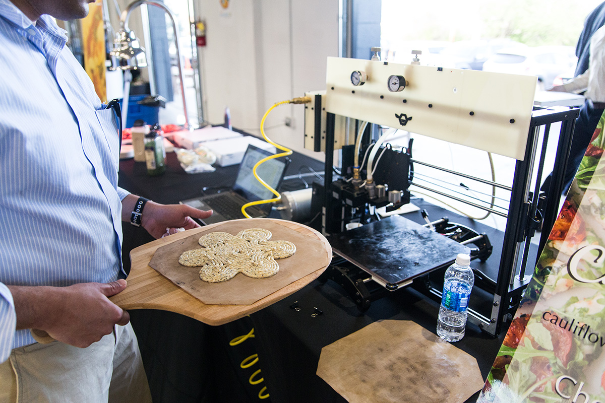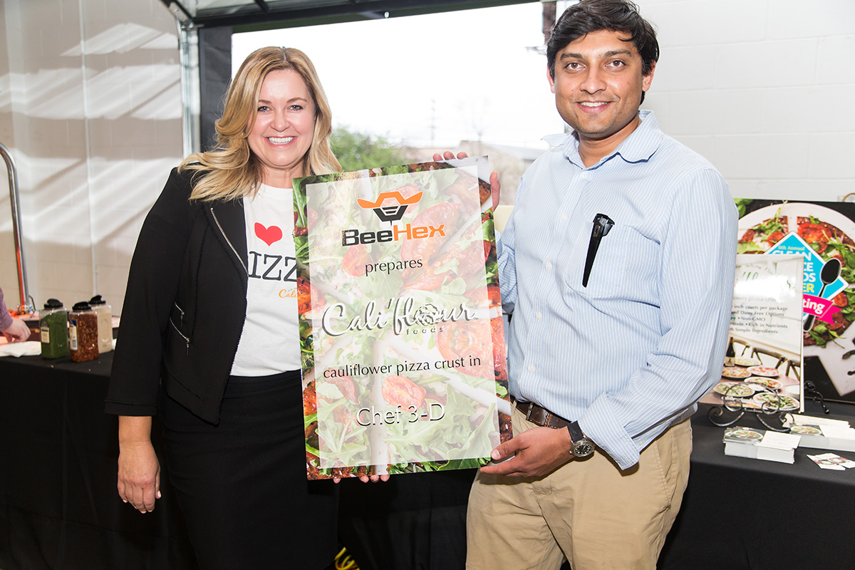 COLUMBUS, Ohio, April 12, 2017 /PRNewswire/ -- BeeHex, the 3D food printing company with NASA origins, announced a collaboration with Cali'Flour, the leader in cauliflower-based pizza crust and plant-based dessert doughs. For a sold-out crowd of 300 people, the duo 3D printed flower-shaped, cauliflower-based personalized pizzas in under a minute at GroundWork, a Columbus-based firm that provides IT services for non-profit entities.