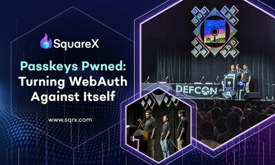PALO ALTO, Calif., Aug. 28, 2025 /PRNewswire/ -- It is no secret that passwords are highly susceptible to phishing and brute force attacks. This led to the mass adoption of passkeys, a passwordless authentication method leveraging cryptographic key pairs that allows users to log in with biometrics or a hardware key. According to FIDO, over 15 billion accounts have been passkey-enabled, with 69% of users globally enabling passkeys in at least one account. The passkey promise is simple - eliminate passwords, eliminate vulnerabilities. Yet, SquareX researchers Shourya Pratap Singh, Daniel Seetoh, and Jonathan Lin disclosed a major passkey vulnerability at DEF CON 33 main stage that puts major banking, shopping, and enterprise SaaS app accounts at risk.