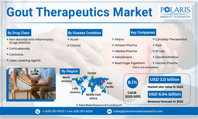 Browse the Detail Report "Gout Therapeutics Market Share, Size, Trends, Industry Analysis Report, By Drug Class (Non-steroidal Anti-Inflammatory Drugs (NSAIDs), Corticosteroids, Colchicine, Urate Lowering Agents); By Disease Condition; By Region; Segment Forecast, 2023 - 2032" with in-depth TOC: https://polarismarketresearch.com/industry-analysis/gout-therapeutics-market