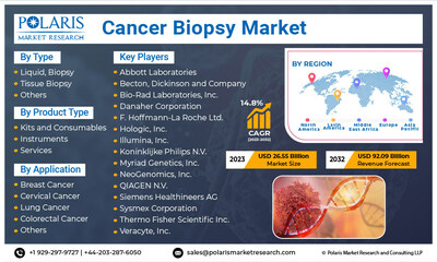 NEW YORK, Nov. 27, 2023 /PRNewswire/ -- A latest research report [110+] pages with 360-Degree visibility, titled "Cancer Biopsy Market Share, Size, Trends, Industry Analysis Report, By Type (Liquid, Biopsy, Tissue Biopsy, and Others); By Product Type; By Application; By Region; Segment Forecast, 2023- 2032" published by Polaris Market Research in its research repository.