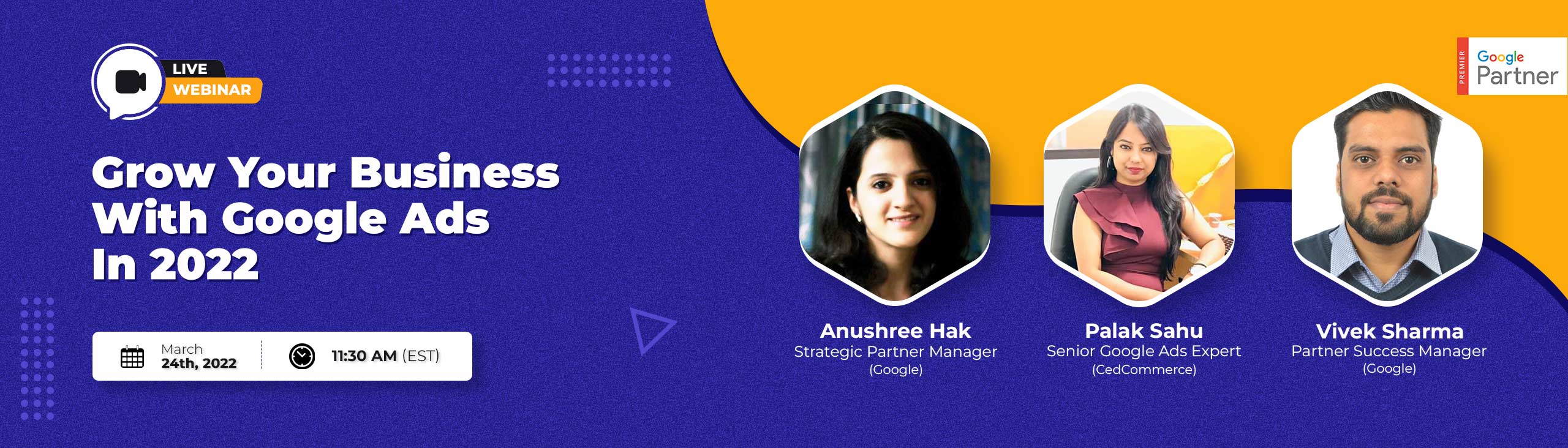 As a part of their brand awareness activities, CedCommerce is coming up with a Webinar "Grow your business with Google Ads in 2022" where Industry experts will cover latest Google Ads trends and best practices. Click Here to Register.