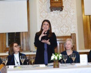 Guests enjoyed dinner before Baroness Hooper welcomed attendees, the Ambassador, and her husband, Minister Gonzalo Ortiz de Zárate. Baroness Hooper provided a brief outline of the Ambassador's career, describing her as "a breath of fresh air".