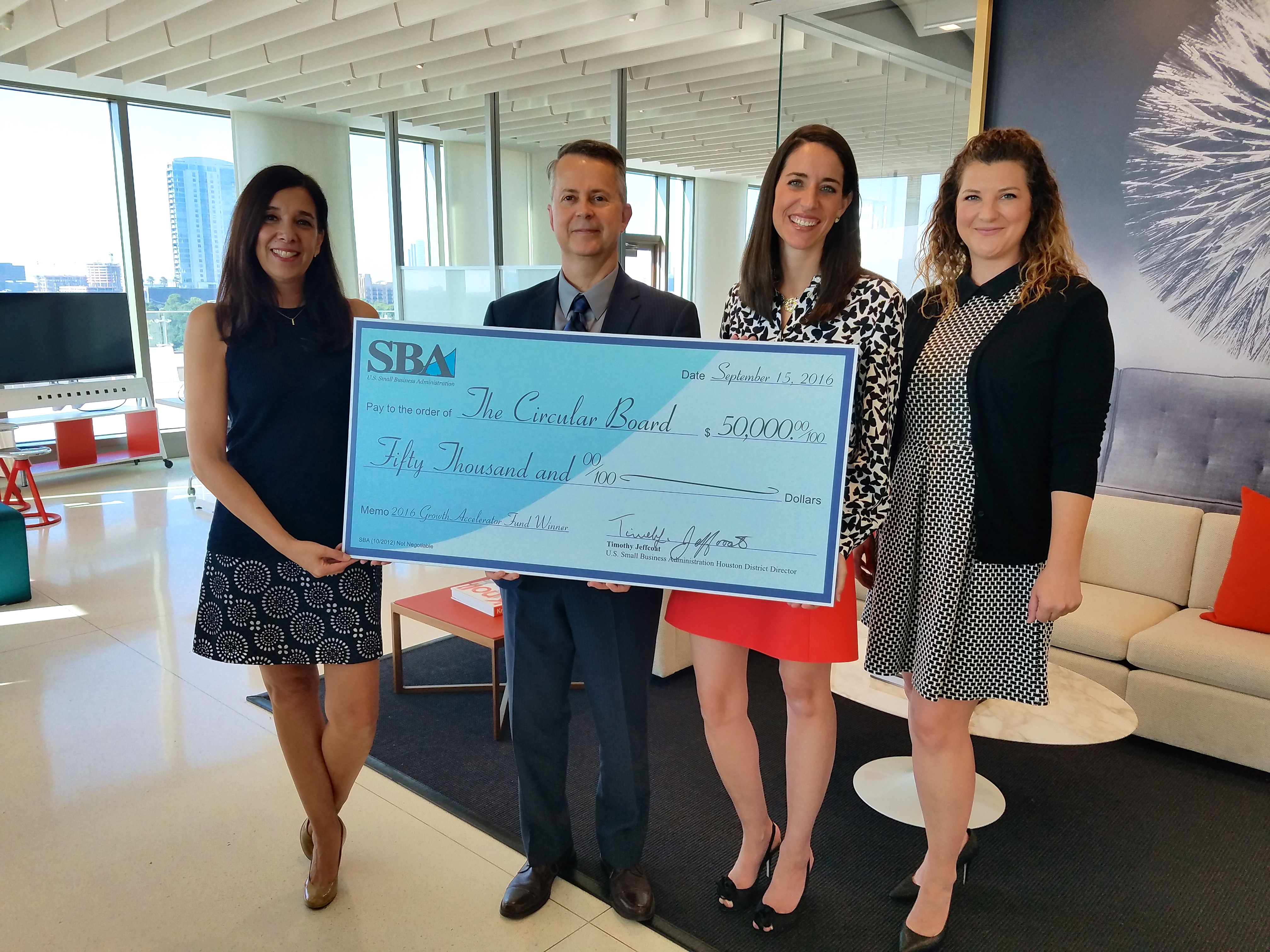 HOUSTON, Oct. 13, 2016 /PRNewswire/ -- The U.S. Small Business Administration (SBA) Office of Investment and Innovation has announced that Circular Board (www.thecircularboard.com) has been selected as a winner of the third annual Growth Accelerator Fund Competition. Circular Board is a virtual accelerator supporting women entrepreneurs in thinking bigger and growing their companies to multi-million dollar revenues.