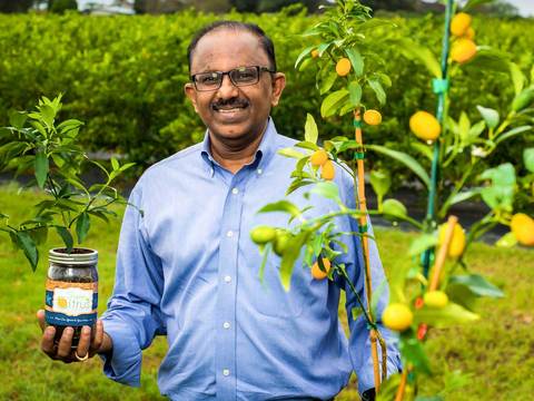 Dr. Mani Skaria, the founder of US Citrus, has developed a grafting method that results in faster growth and bud sprouting for citrus trees.