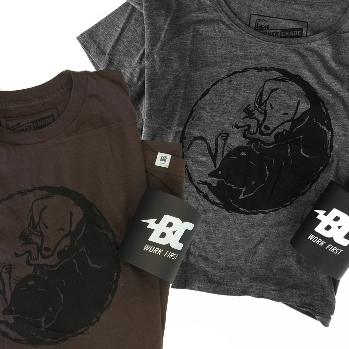 Blue Collar enlisted the talents of Philadelphia-based illustrator, Kevin Cornell, to create the yin and yang art that's emblazoned on the front of the tees. Each shirt is designed, made, and printed in the USA, and ships right to your doorstep with a burly, brand new BC koozie.