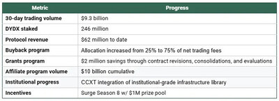 Charles d'Haussy, CEO of the dYdX Foundation, commented: "dYdX focus remains on transparency, operational efficiency, and ensuring the protocol continues to mature in a sustainable and community-aligned way. The November updates reflect solid network activity and meaningful progress across governance, grants, and institutional integrations."