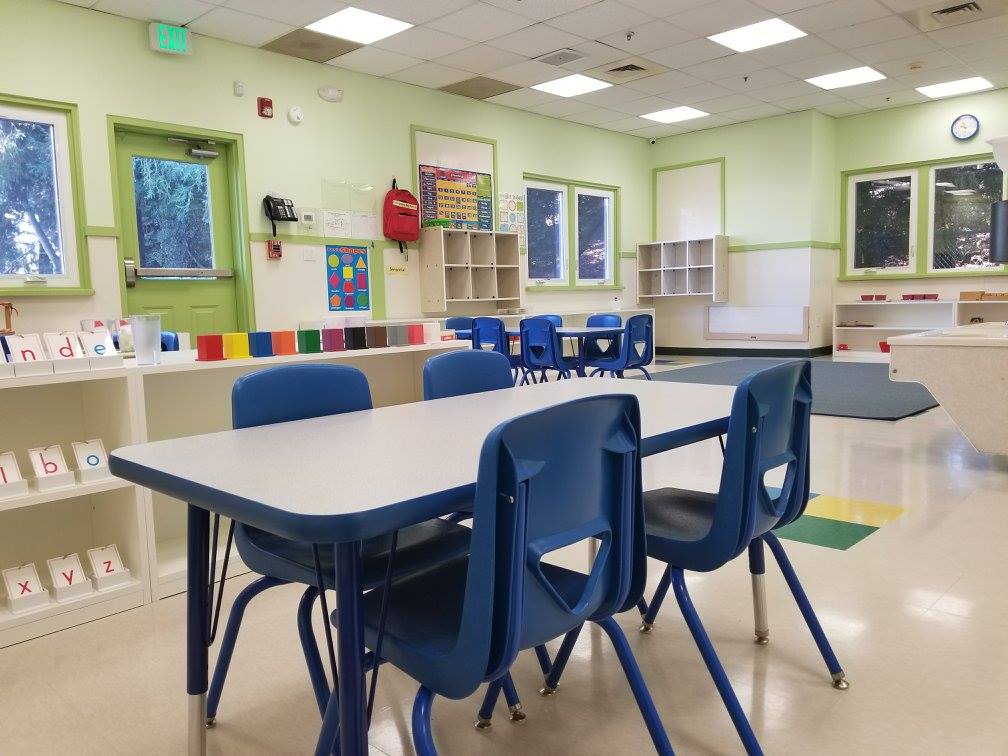 The Danville campus is nestled in a lush green serene surrounding and offers a spacious and beautiful Tudor cottage style campus, which has eight colorful and inviting classrooms that are filled with sequenced and high-quality Montessori material. A spacious playground, separate for each age group, in the back of the school is fully gated and offers a safe environment for children as they play and work on strengthening their gross motor skills.
