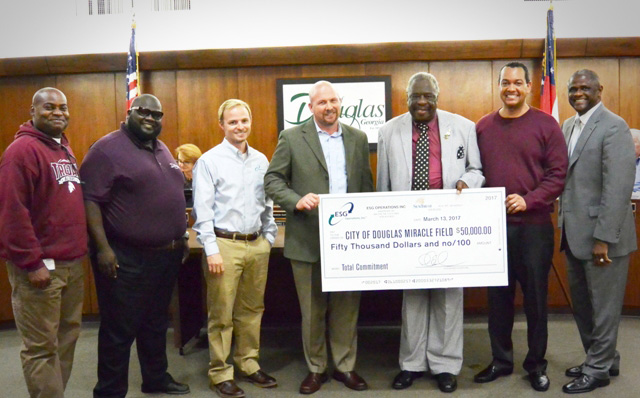 MACON, Ga., March 27, 2017 /PRNewswire/ -- As a part of ESG's ongoing commitment to make a difference in the communities we proudly serve, on March 13, 2017, ESG Operations, Inc. donated $50,000 to assist the City of Douglas, Georgia in building a Miracle Field Complex. The Douglas Miracle Field will remove barriers that prevent children and adults with physical and mental disabilities from enjoying a playground and playing baseball—America's favorite pastime.
