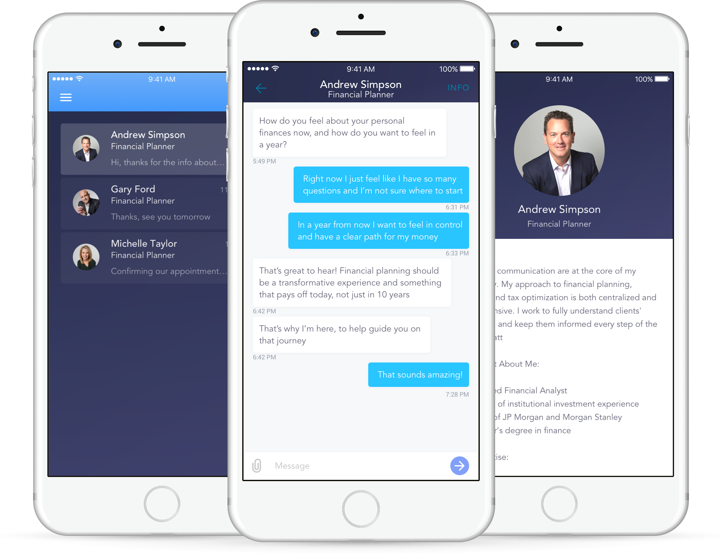 What's more, the entire platform is available through a robust mobile app - prospective clients and advisors can begin communicating immediately via a secure chat function within the app, eliminating time wasted scheduling calls and meetings. Zoe makes the match and the relationship begins instantly.