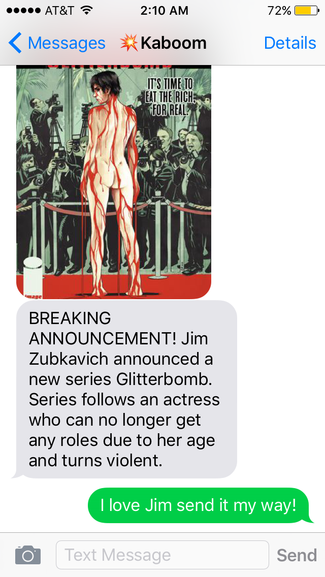 "Do you have the latest Uncanny InHumans release?" a new customer asks as he walks into the store. The manager responds, "I'm sorry I've sold out as fast as I got them in stock." Regardless of an in store subscription, an industry standard to promote purchasing, this trend repeats itself frequently from the comic book retailer. The supply of Comic Books is monitored by Publishers (Marvel, DC, Dark Horse etc.) to maintain the collectible feel of the episodes. In addition, Publishers are inconsistent on vital announcements to new stories. They have historically made important announcements without any notice. This cycle can sometimes result in a common winner of these coveted collectibles. The fan that is always on top of the news. The fan that can miss out is typically the one who shares the same passion, but doesn't get around to the information in time. The creators of Kaboom Chat know this, and want to make it an equal playing ground. A store that gives you breaking news you are interested in, and an option to purchase in an instant channel, a text message.