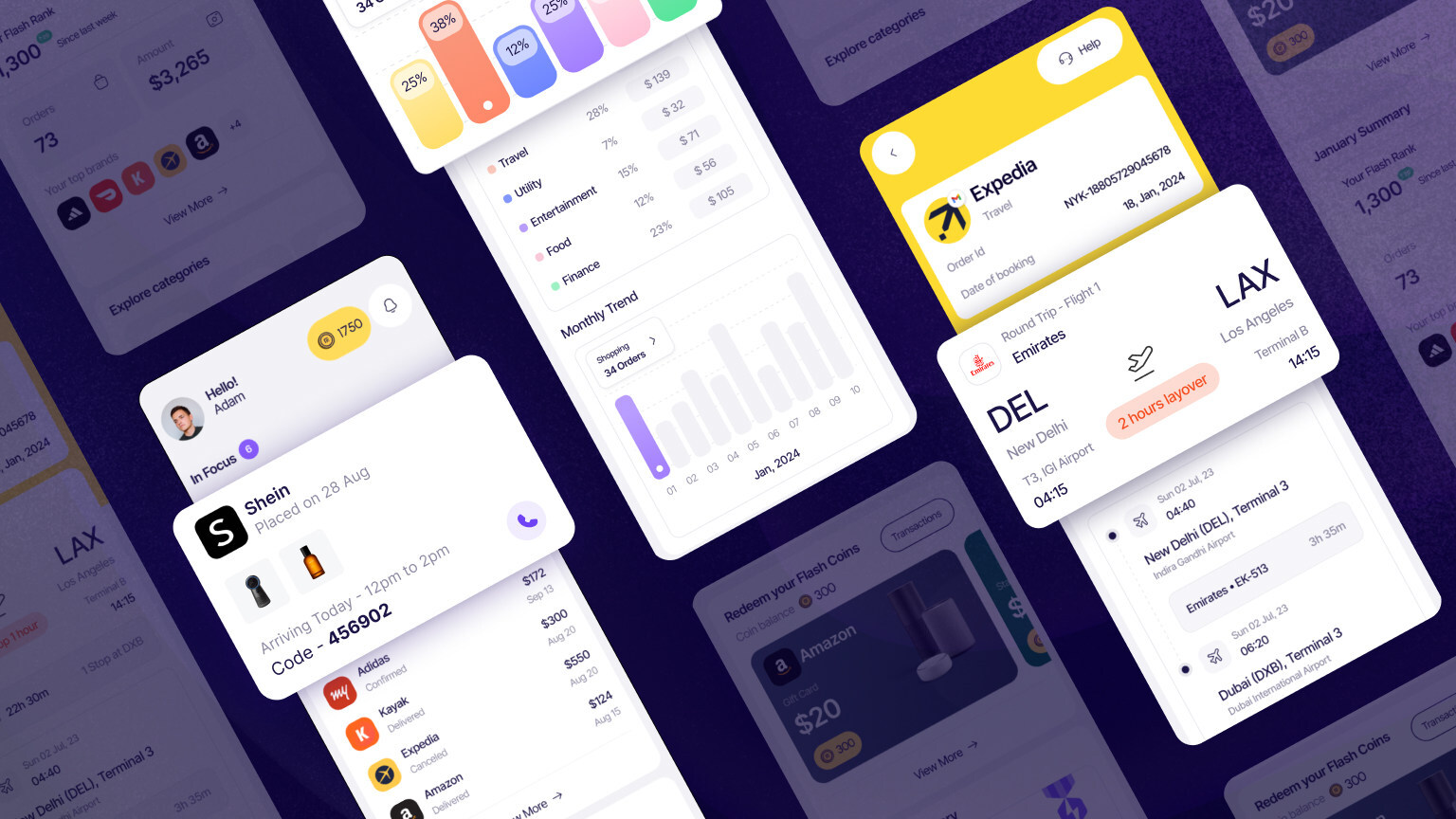 At the heart of Flash.co is a unique shopping email ID which consolidates all purchase communications into a secure, elegant app interface. With Flash.co, users no longer need to sift through mountains of emails in their personal inboxes. Instead, the app organizes every purchase, provides personalized spending insights, highlights deals, and tracks orders—all in one place.