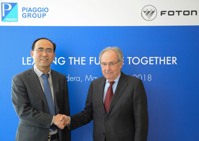PONTEDERA, Italia, 24 de mayo de 2018 /PRNewswire/ -- El 15 de mayo de 2018, Foton Motor y Piaggio Group realizaron en Italia la ceremonia de firma del proyecto de desarrollo conjunto de nuevos productos en la categoría de vehículos comerciales ligeros. El acuerdo fue refrendado conjuntamente por el vicepresidente de Foton Motor Group y director ejecutivo de Foton International, el Sr. Chang Rui y el presidente del directorio y director ejecutivo de Piaggio & C. S.p.A. (PIA.MI), Roberto Colaninno.