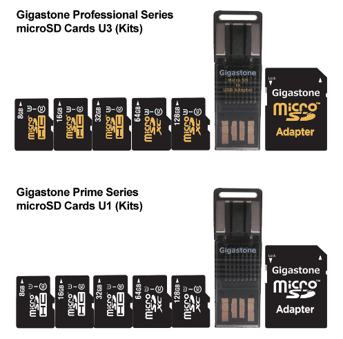 Gigastone puts its customers first and supplies all Micro SD Cards with complimentary USB and/or SD Card Adapters.