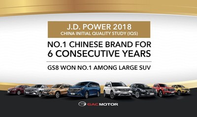 Por sexto año consecutivo, GAC Motor se clasificó primera en el Estudio de Calidad Inicial (Initial Quality Study SM, IQS) de China de J.D. Power Asia Pacific, un indicador de mercado sobre la calidad de los vehículos que reconoce a las marcas y productos automotrices de mejor desempeño.