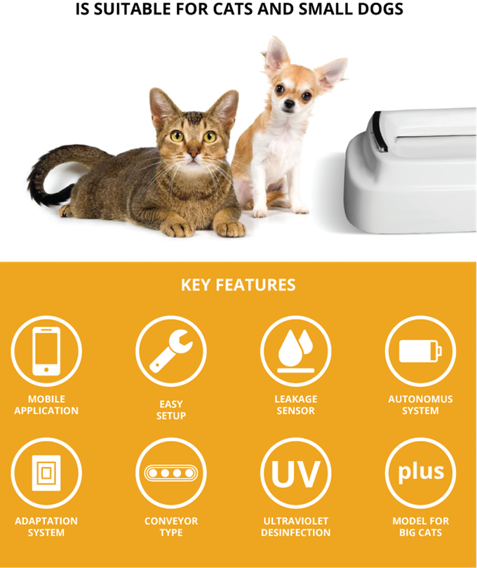 The automatic litter box with a conveyor system simply did not exist before. Typical models of litter boxes presented on the market today are bulky, costly in terms of water/electricity consumption, and also require special fillers. In the long run, such litter boxes require more spending on a cat's maintenance routine.