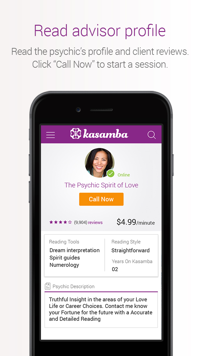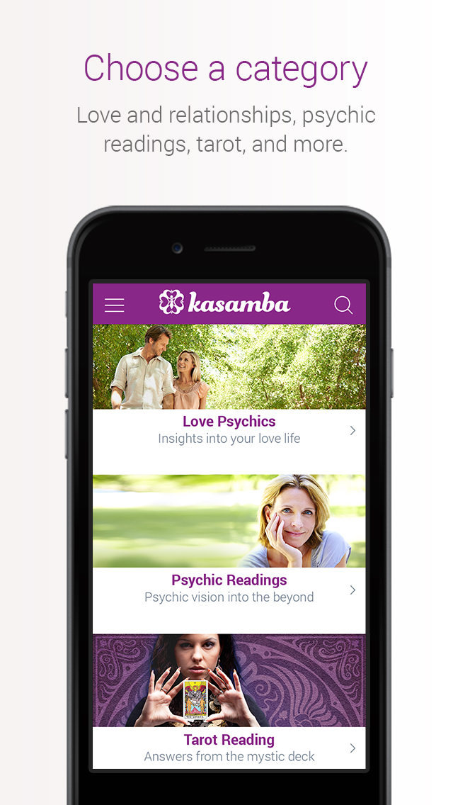 Kasamba is available for clients on desktop, mobile web and via the new app. This versatility sustains Kasamba's leadership in the mobile psychic industry. Kasamba's top psychic advisors are available anywhere, anytime to help others find their way to love and happiness.