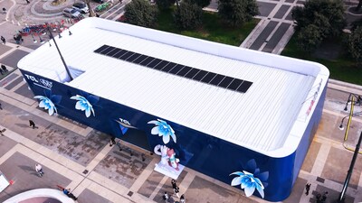 The exterior of the showcase is crafted from blue mirrored glass, inspired by the edelweiss of the Alps. This design seamlessly merges natural imagery with a technological aesthetic, centered around the concept of "It's Your Greatness," symbolizing the spirit of courage and resilience. Behind this dynamic and radiant presence lies the green energy support of TCL PV Tech—the rooftop is equipped with its innovative, high-efficiency photovoltaic modules and energy storage system. Through the practical application of integrated solar and storage, it continuously supplies clean power to the edelweiss-inspired exterior installation, allowing green energy to illuminate the Milano Cortina Olympic Games.