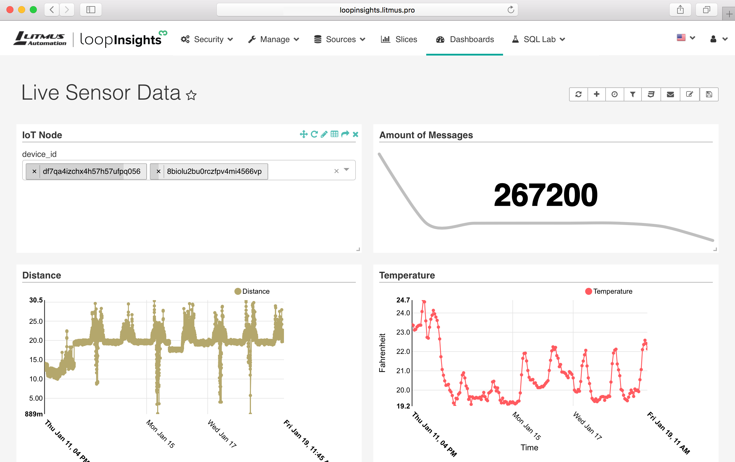 SAN JOSE, Calif., Jan. 23, 2018 /PRNewswire/ -- Litmus Automation, an Industrial Internet of Things (IIoT) platform provider, today announced the availability of Loop Insights, a live dashboard that comes out of the box with the Loop platform for complex IoT analytics and visualization. Loop Insights is one of several flexible modules offered with the Loop platform, designed to provide a wealth of information and insight on IoT integrations, through just a few simple clicks.