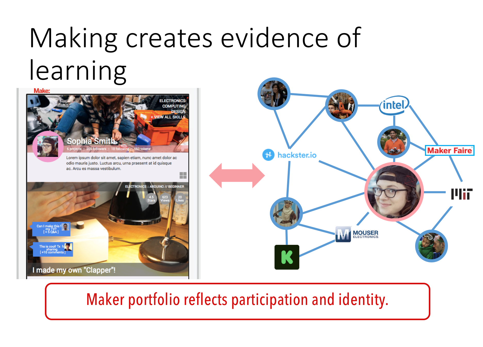 Daragh Byrne, Intel Special Faculty at Carnegie Mellon, shared some of the school's internal debates around assessment: "When people encounter portfolios for the first time, particularly in engineering or computer science, they see it as an entirely subjective way of reviewing work that doesn't provide the rigor that other assessment criteria hold. I think once people are embedded in the process of portfolio review, that perception goes away. Once you get hands-on with the work, it's a much more tacit way of understanding, through the work, how [the student] has actualized knowledge and encoded the things they've actually learned into physical things."