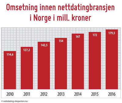 Nettdatingrapporten 2016-2017: Bransjeomsetning på nesten 179,5 millioner kroner