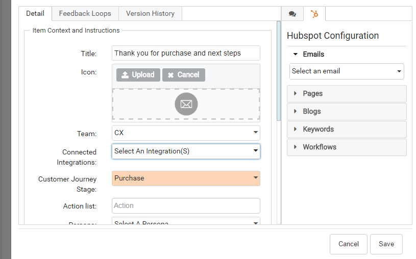 - Customer Journey Feedback Loops that can be built at each touchpoint through integrations such as SurveyMonkey surveys, Hubspot marketing automation, Salesforce CRM and others, that then update inside the context of each touchpoint.