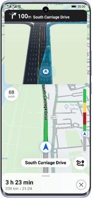 La función de guía de carril de Petal Maps ayuda a los conductores a juzgar con precisión los cambios de ruta cuando se enfrentan a escenarios viales complejos, con recordatorios oportunos sobre cuándo cambiar de carril para evitar perder una salida o un giro. Petal Maps también ofrece una función de mapas sin conexión que permite a los conductores buscar y navegar sin contar con acceso a internet, lo que garantiza una navegación sin preocupaciones en todo momento a través de datos de mapas descargados previamente.