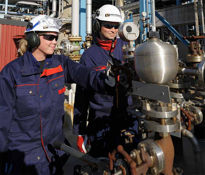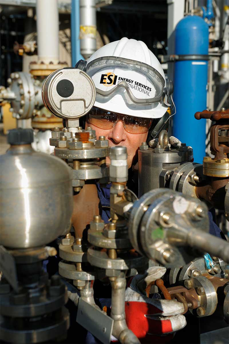 An Energy Services International engineer inspects a chemical plant during planning of precommissioning services
