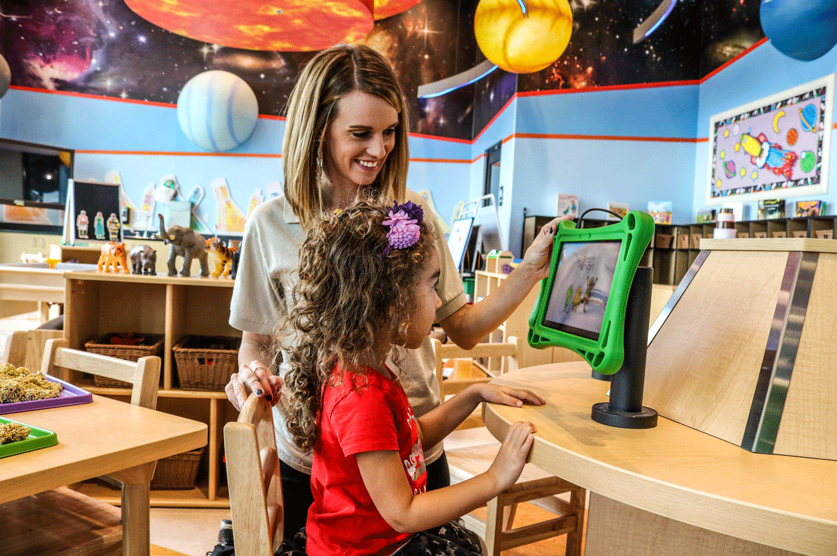 Children's Learning Adventure campuses feature several stimulating learning environments, including but not limited to: a science center complete with a planetarium, a multimedia room with a real TV studio utilizing video cameras and more, an expansive library, a technology center fully equipped with iPads and tablets, and an expansive outdoor playground with regulation basketball and tennis courts.