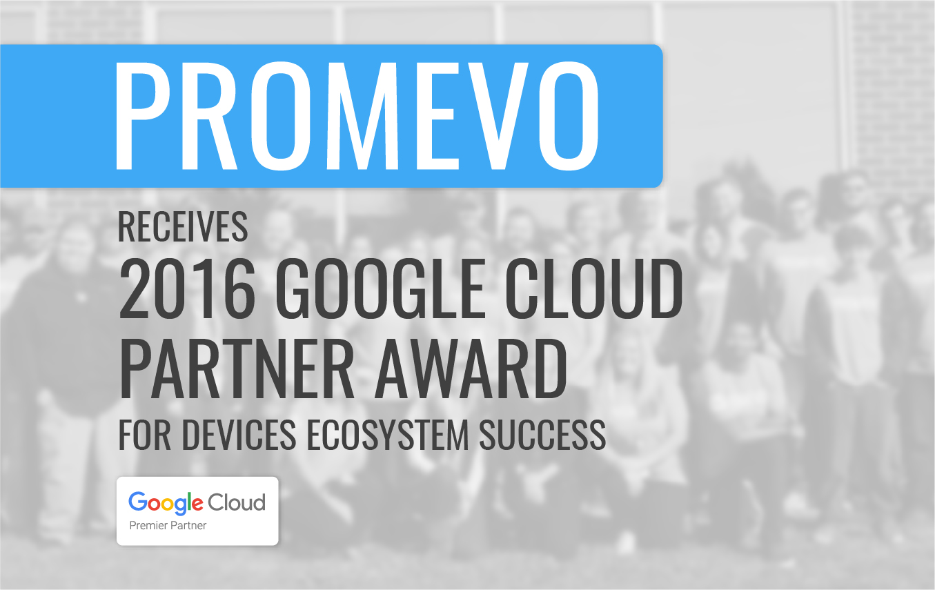 BURLINGTON, Ky., March 16, 2017 /PRNewswire/ -- On March 16, 2017, Promevo announced that it has received the Google Cloud 2016 Americas Partner Award for Devices Ecosystem Success. This award recognizes Promevo for its demonstrated sales, marketing, technical and support excellence to help customers of all sizes transform their businesses and solve a wide range of challenges using the Google Cloud product suite.