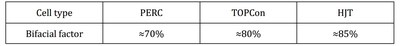 Tabla 2.1 Factor bifacial de los módulos PERC/TOPCon/HJT